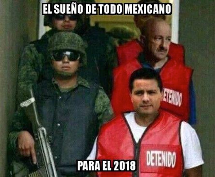 El Presidente Enrique Peña Nieto, Andrés Manuel López Obrador, precandidato por el Movimiento de Regeneración Nacional (Morena), el abanderado del Partido Revolucionario Institucional (PRI) y el ex Presidente Felipe Calderón Hinojosa son algunos de los protagonistas de los memes de fin de año.