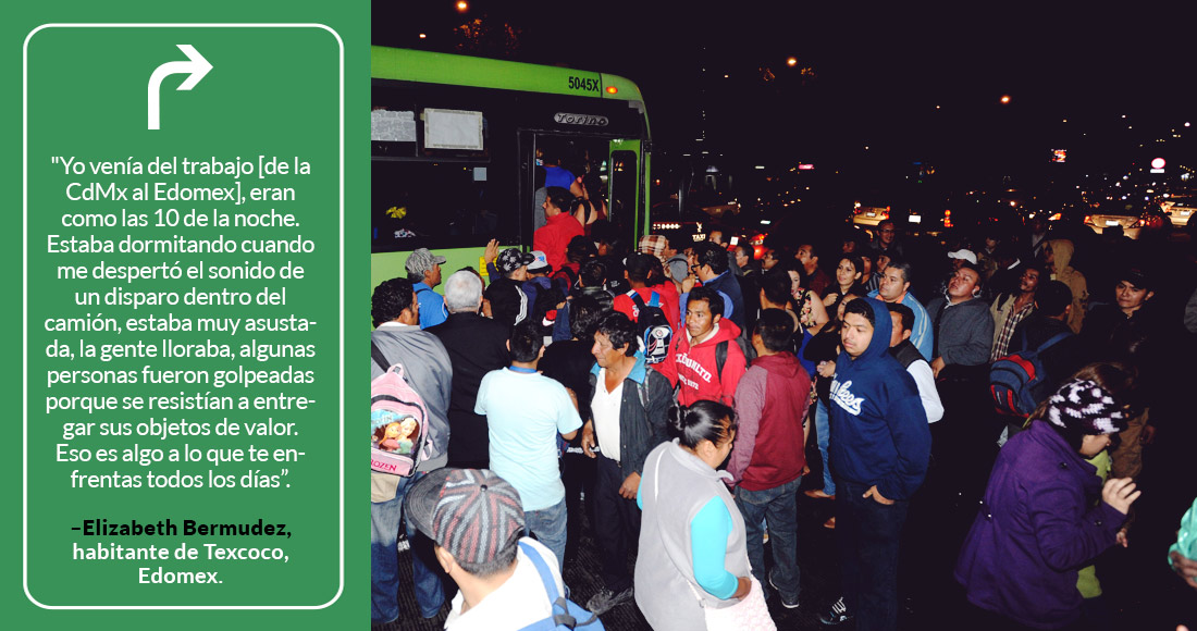 Y afirma que para quienes se ven orillados a trasladarse a la ciudad para trabajar o estudiar, "es el pan de cada día". Incluso deben tomar algunas medidas extraordinarias: "Hasta guardas un dinerito para tener cómo regresarte en caso de que te asalten".