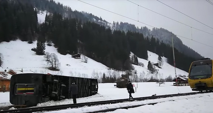 Ciudad de México, 6 de enero (RT/SinEmbargo).- En Internet apareció un video del descarrilamiento de un tren en Suiza azotada por la tormenta invernal Burglind, con una velocidad del viento que alcanza unos 200 kilómetros por hora. El incidente ocurrió este miércoles en el cantón de Berna, cerca de la localidad de Lenk. En las imágenes se puede apreciar que una fuerte ráfaga del viento provoca la caída del primer coche del tren. Ocho personas resultaron heridas en el incidente.