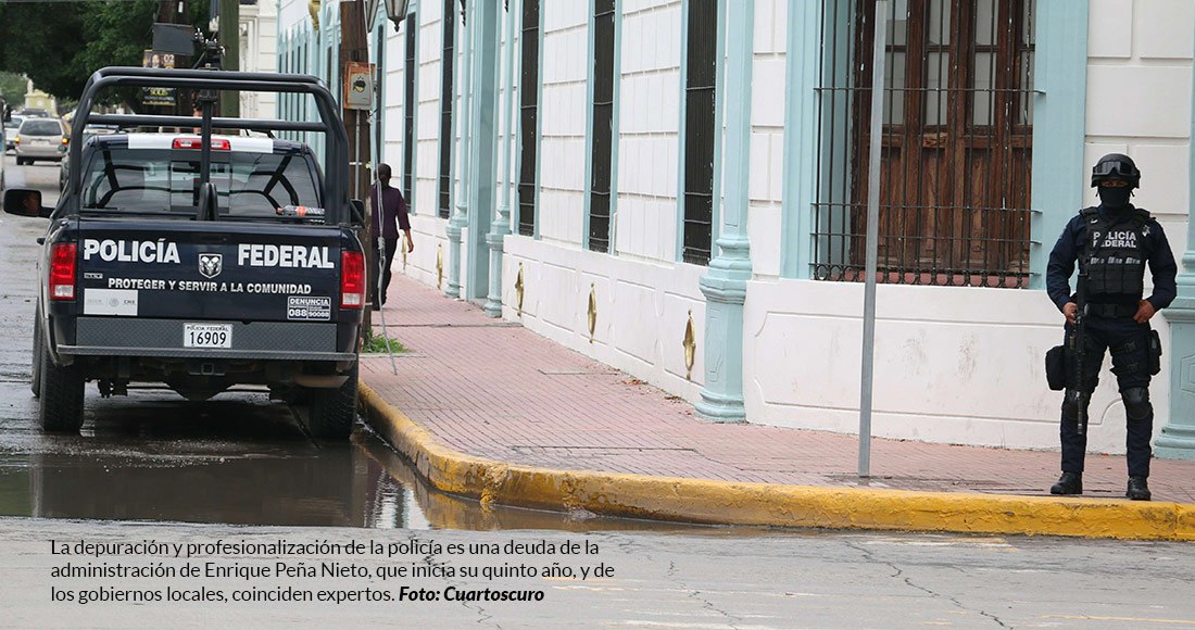La depuración de la policía es una deuda pendiente a cinco años de la administración del Presidente Enrique Peña Nieto y los gobiernos locales, pese a que durante años se ha presumido como una de las alternativas para salir de la crisis de inseguridad y violencia por la que atraviesa el país, coincidieron especialistas en seguridad.