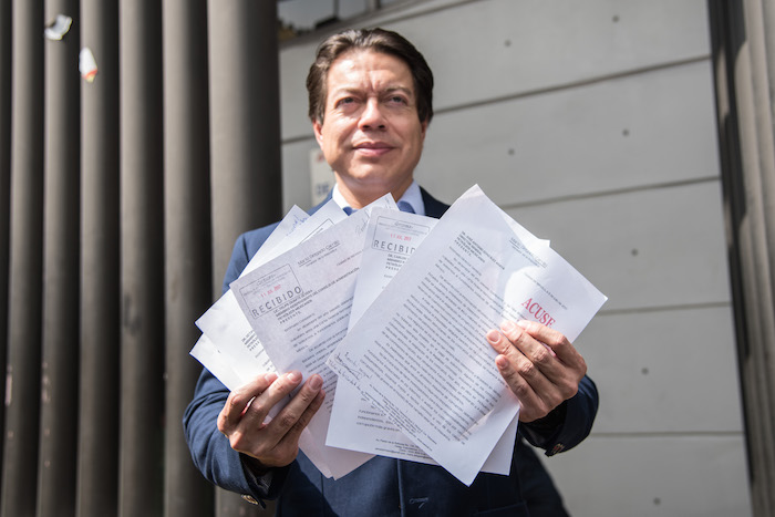 El 9 de julio Mario Delgado Carrillo, Senador de PT-Morena, acudió a las instalaciones de PEMEX para entregar documentos dirigidos al director González Anaya y miembros del Consejo Administrativo de PEMEX, en donde se solicitó rescindir todos los contratos con las compañías brasileñas Odebrecht y Braskem. Foto: Mario Jasso, Cuartoscuro