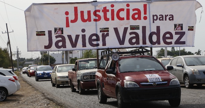 Ayer se cumplieron ocho meses del asesinato del periodista Javier Valdez Cárdenas, y periodistas, activistas, académicos y amigos de él salieron a las calles una vez más, con una caravana de vehículos, con el mensaje de que las movilizaciones seguirán hasta que se aclare el caso.