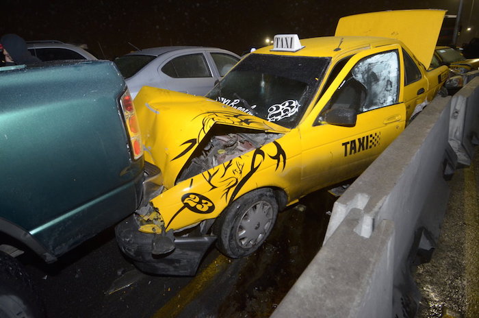 Eran cerca de las 21:00 horas cuando primero un vehículo, al tratar de esquivar una camioneta que estaba descompuesta, no lo logró, la impactó y se volcó. Al quedar en esa posición, los automovilistas que iban detrás intentaron frenar, pero había hielo en el asfalto, y los vehículos derraparon.