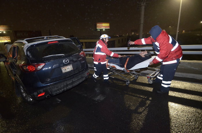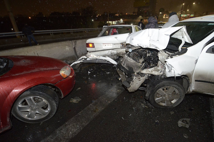Saltillo/Ciudad de México, 17 de enero (SinEmbargo).- Por el clima gélido (-1°C) y la falta de precaución, cerca de las 21:00 horas de anoche el periférico Luis Echeverría se convirtió en una “pista de patinaje” donde 43 vehículos colisionaron uno tras otro en el puente Nazario Ortiz, protagonizando una mega carambola.