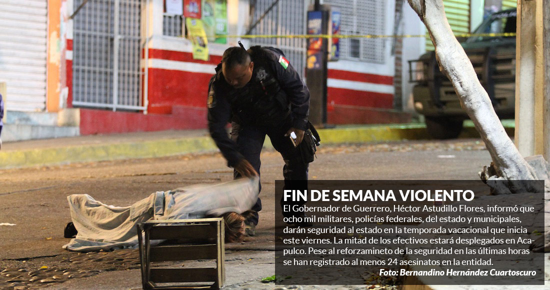 Guerrero/Ciudad de México, 18 de enero (ElSur/SinEmbargo).- Cinco hombres y una mujer fueron asesinadas a balazos ayer en distintos hechos de violencia, uno de ellos en la playa Tamarindos, en la zona turística.