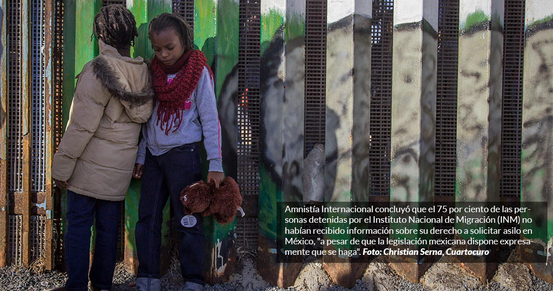Tras su investigación, Amnistía concluyó que el 75 por ciento de las personas detenidas por el Instituto Nacional de Migración (INM) no habían recibido información sobre su derecho a solicitar asilo en México, "a pesar de que la legislación mexicana dispone expresamente que se haga".