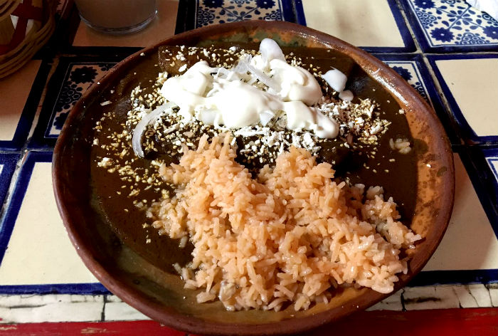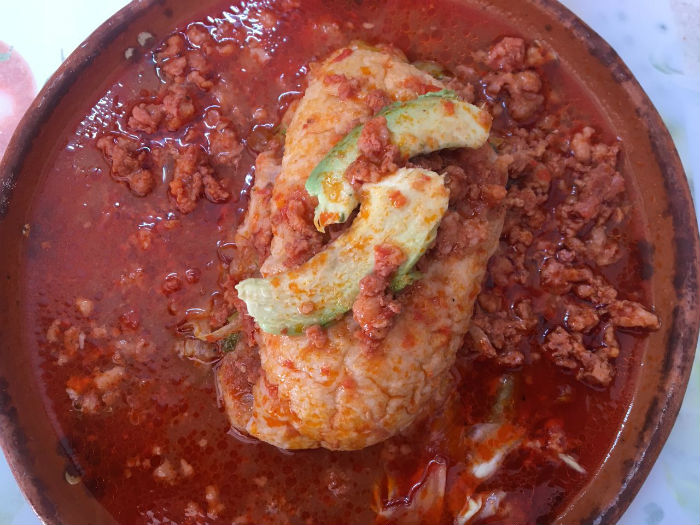 Paramos en La Tía Tere, un lugar con un menú muy variado que incluía pozole, ceviche, camarones y por supuesto, mole, cemitas, chanclas, chalupas y pelonas.