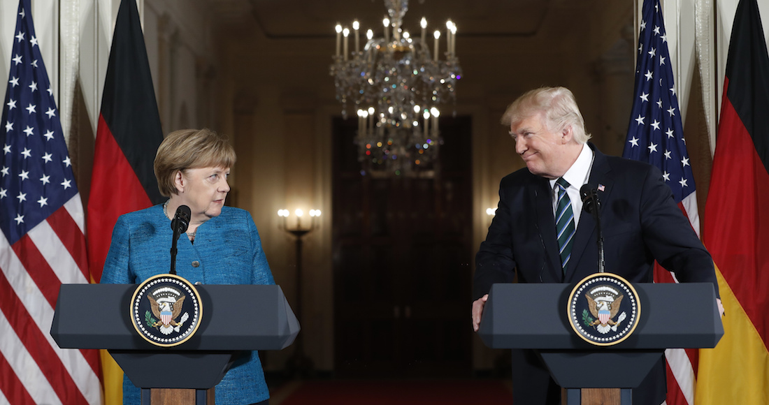 La canciller alemana, Angela Merkel, y el Presidente estadounidense, Donald Trump. Foto: EFE/Clemens Bilankel