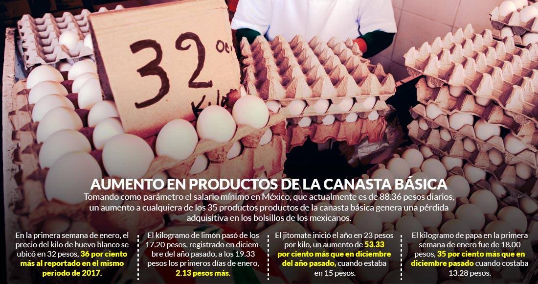 La primera semana de enero algunos productos de la canasta básica mexicana como el huevo, frijol, pollo, azúcar, papa, arroz, limón, cebolla y aguacate registraron un aumento en su precio.