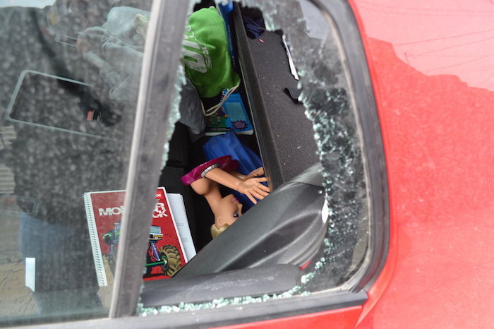 Fue necesario romper la aleta trasera del lado del conductor para llegar a la mano de lo que al final resultó ser el busto de una muñeca que se encontraba atrapado.