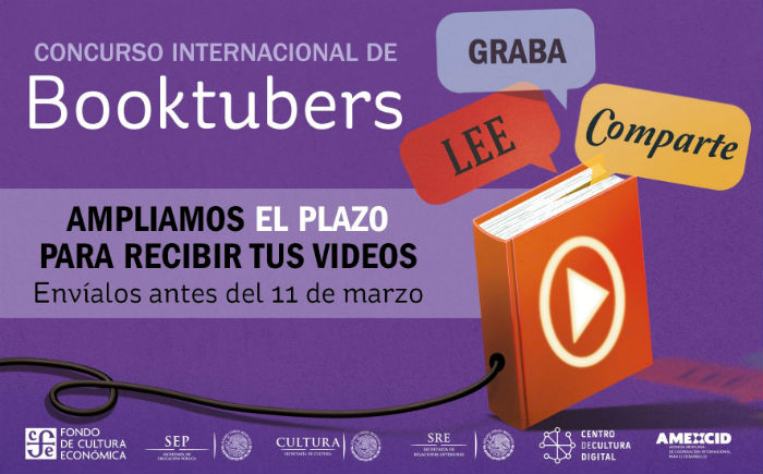 Con el lema “Lee, graba, comparte”, el Fondo de Cultura Económica extiende la convocatoria del Concurso Internacional de Booktubers, con la intención de que un mayor número de niños y jóvenes, entre los 9 y 19 años de edad, se animen a participar con sus video reseñas de libros a través de internet.