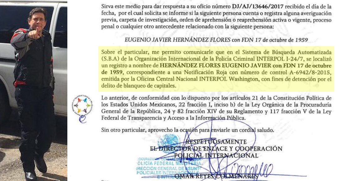 En un oficio dirigido al Subprocurador de Justicia de Tamaulipas, Creig López Olguín, la Procuraduría General de la República confirmó que Hernández Flores tenía una “notificación roja” con número de control A-6942/8-2015, emitida por la Oficina Central Nacional Interpol Washington desde 2015 por el delito de blanqueo de capitales.