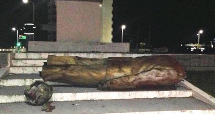 Cerca de las 10 de la noche, los fuertes vientos derribaron y descabezaron la estatua ubicada en el boulevar que lleva el mismo nombre del ex mandatario.