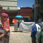 Saltillo, Coahuila.- Familiares de personas desaparecidas protestaron en el exterior de la capilla del Santo Cristo en Saltillo, donde el ex gobernador de Coahuila, Humberto Moreira, bautizó a la menor de sus hijas, Eva Catalina.