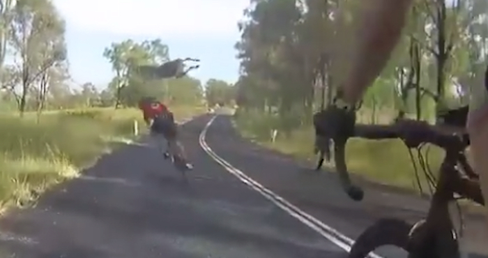 En el video, que ya se ha viralizado, aparece un grupo de ciclistas que circulaban por una carretera en la región de Boonah, en el sudeste de Queensland, cuando un canguro choca contra una de las ciclistas.