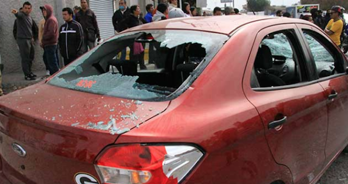 Ciudad de México, 1 de febrero, (Pulso/SinEmbargo).-Al menos seis vehículos de Uber y de particulares ajenos a la plataforma fueron agredidos por taxistas al mediodía de este miércoles sobre la carretera a Matehuala, a la altura de Soriana Glorieta.