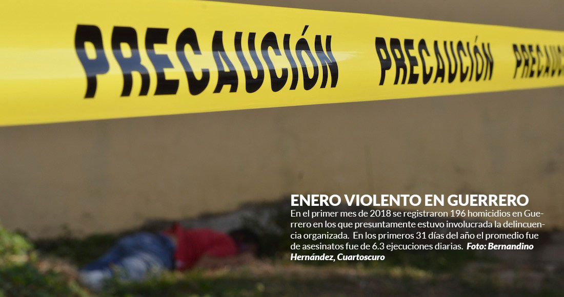 Guerrero/Ciudad de México, 2 de febrero (ElSur/SinEmbargo).– En el primer mes de este año se registraron 196 homicidios en el estado, en los que presuntamente está involucrada la delincuencia organizada, 24 más que en diciembre del año pasado, cuando hubo 172, lo que representa un incremento del 13 por ciento, indica un recuento realizado por El Sur.