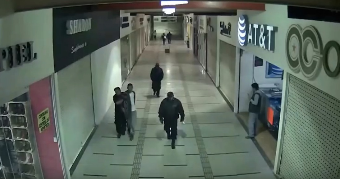 En otra parte del video, se observa a un hombre vestido con ropa parecida a la que fue captada cuando fue detenido, pero siempre tiene la capucha de la sudadera puesta, dando por hecho que era Marco Antonio Sánchez Flores.