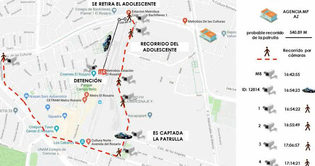 Anoche, la dependencia presentó una serie de videos del C-2 en el que se detalla la presunta ruta que habría seguido el estudiante de preparatoria de la Universidad Nacional Autónoma de México (UNAM) después de ser detenido y liberado por policías capitalinos el 23 de enero en el paradero del Metrobús El Rosario, en la delegación Azcapotzalco.