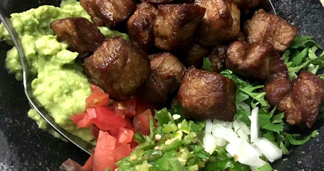 Todos los platillos fueron al centro. Primero llegaron unas buenas carnitas de rib eye, con guacamole y pico de gallo.