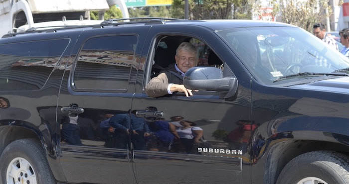 A su llegada, López Obrador fue recibido con una publicación en el espectacular de Venustiano Carranza y Periférico, bajo el lema de “Yo También soy PRIeto y estoy con Ya sabes quién”, replicando la frase de las calcomanías entregadas recientemente en uno de los cruceros de la ciudad.