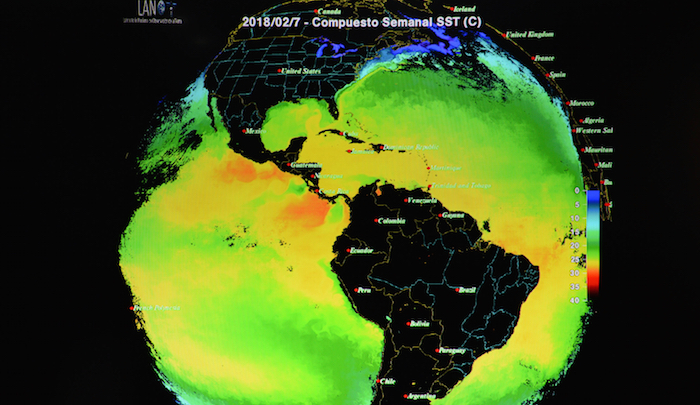 El satélite Geostationary Operational Environmental Satellite (GOES) 16 dota al laboratorio de información en distintos formatos, con una imagen del hemisferio occidental completo cada 15 minutos con una resolución de dos kilómetros por pixel, según explicó la maestra en ciencias Gabriela Gómez.