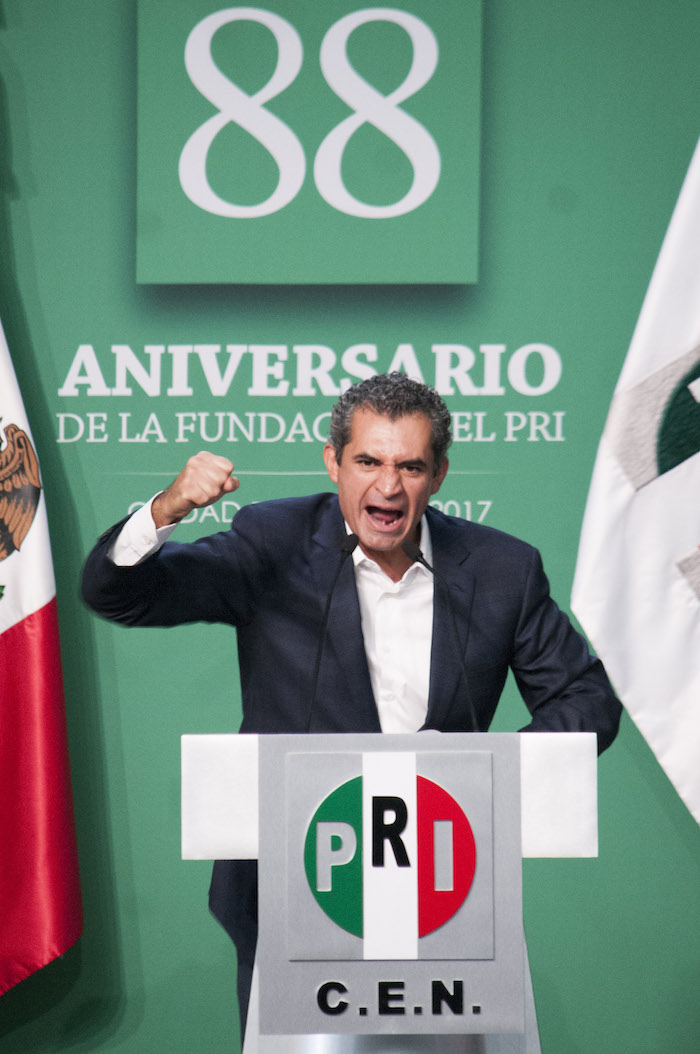 Enrique Ochoa Reza, dirigente nacional del tricolor, en el evento donde se celebró el 88 aniversario del Partido Revolucionario Institucional, el 4 de marzo pasado. Foto Diego Simón Sánchez, Cuartoscuro.