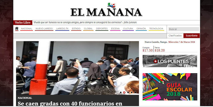 Apenas, el miércoles la organización civil Artículo 19 había alertado que diarios regionales en el norte de México como El Mañana de Nuevo Laredo había sufrido agresiones cibernéticas, incluso clonando su sitio web y redes sociales.