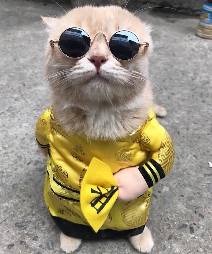 Además de por lo atípico de su nombre, otra razón por la que ha causa furor entre clientes y vendedores radica en sus llamativas y tradicionales vestimentas. También suele lucir un sombrero y unas gafas que le otorgan una aspecto de lo más singular. El felino, de tres años, se volvió famoso en las redes sociales después de que su dueño, Le Quoc Phong, subiera sus fotografías en su página de Facebook.