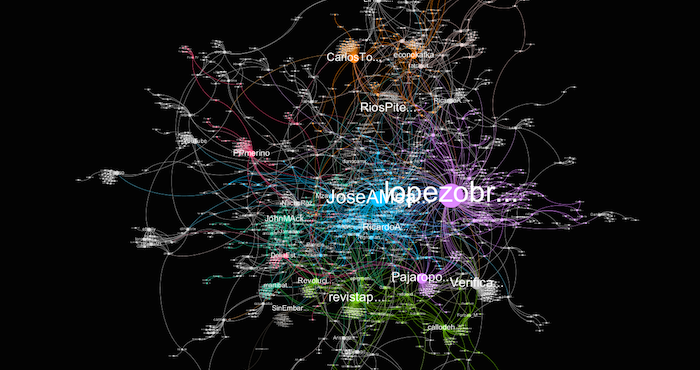 AMLO generó conversaciones más distribuidas, y diálogos más orgánicos; es decir, las fronteras entre los grupos de conversación se mezclaron en mayor medida que en el caso de los temas relacionados con Ricardo Anaya y José Antonio Meade, candidatos por las coaliciones “Por México al Frente” y “Todos por México” respectivamente.