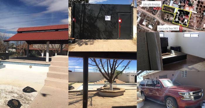 "Con base en una orden judicial emitida por el Tribunal de Control del Distrito Judicial Morelos, se realizó la diligencia de cateo en los inmuebles ubicados en la Calle Texas número 9403 en Robinson II, y el otro, en la calle Almoloya, Fracción II del lote 8, manzana 27 de la Zona Uno, Robinson", señaló la dependencia en un comunicado.