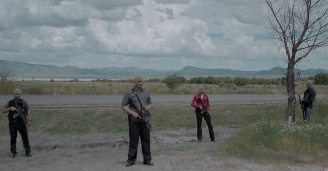 Los rostros de las personas mostradas a cuadro se encuentran cubiertos por máscaras todo el tiempo y siendo víctimas o victimarios, todas están presas por un sistema llamado violencia y por otro llamado Estado.