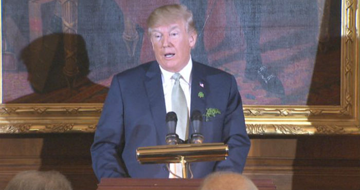 Pres Trump receives Bowl of Shamrock from the Taoiseach at WH reception marking St. Patrick's Day. He says the Irisih Govt hopes to find a solution to the problem of undocumented Irish in the US "who love this country dearly." pic.twitter.com/2yNRZxmgCT