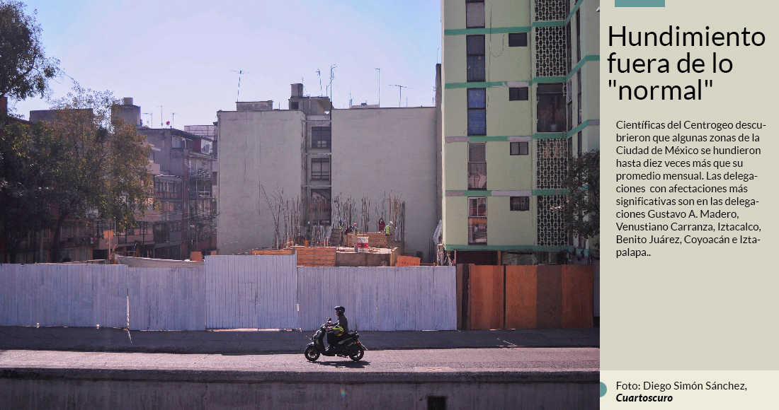 “Es normal que el suelo tenga movimientos, pero la Ciudad de México es un caso atípico porque está construida sobre un lago. Eso en sí mismo hace que al estar sobre un terreno relativamente lodoso, se hunda más. Si a eso sumamos la extracción de agua del acuífero y el peso propio del medio construido, se acelera el proceso de hundimiento”, detalló Martínez Viveros en un texto publicado en la web del Conacyt.