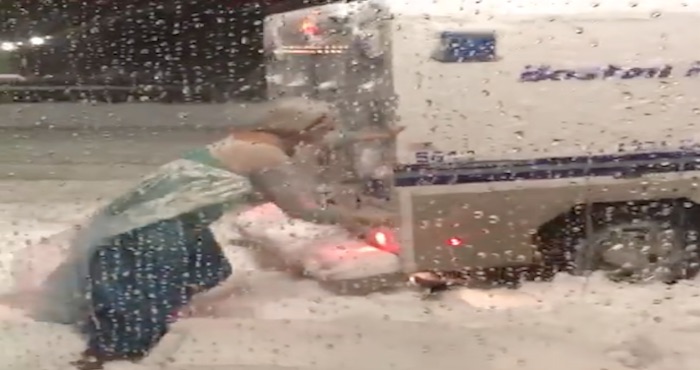 Los testigos de la acción de "Elsa" no podían dejar de aplaudir, pues el hombre empujó el vehículo de la policía y retiró con sus propias manos la nieve de entre las llantas.