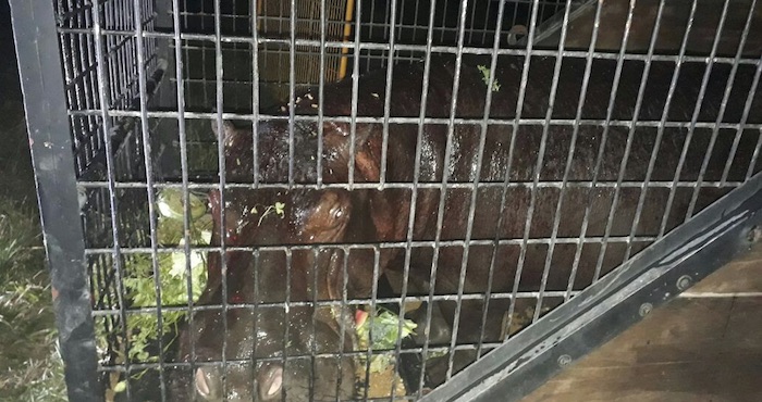 La captura del hipopótamo se llevó a cabo a las 19:30 horas de este 19 de marzo, por lo que induciéndolo con alimento y sin aplicación de sedante, fue colocado en una caja transportadora especial para el traslado de hipopótamos, mismo que fue facilitado por Africam Safari.