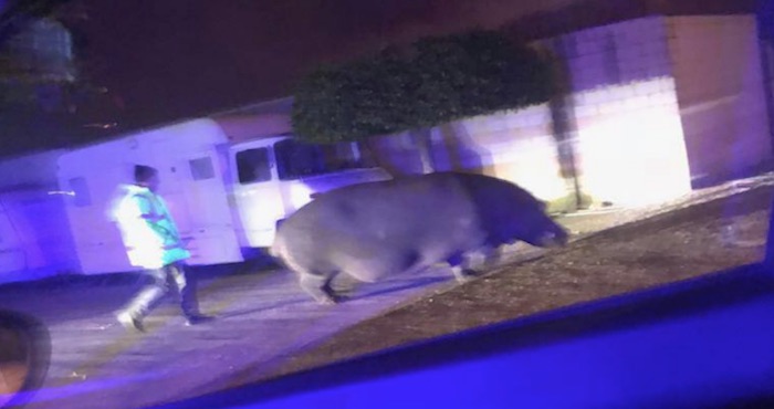Vecinos de la comunidad avistaron a un enorme hipopótamo que tranquilamente deambulaba a unos 50 metros de la iglesia de la comunidad. El animal, aparentemente, se escapó de un circo que actualmente se presenta cerca de esa zona.