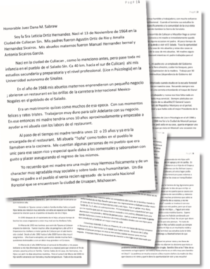 Cartas enviadas por Leticia Ortiz a la jueza Dana M. Sabrawl. Foto: RíoDoce