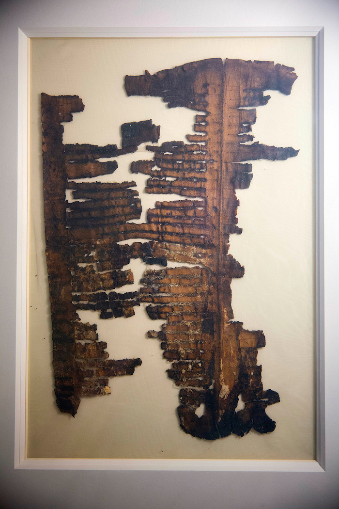 El fragmento del pergamino que se exhibe cuenta la historia del Arca de Noé, posándose en los picos del monte Ararat después de la legendaria inundación. Noé cuenta cómo "expió por toda la tierra en su totalidad" al ofrecer varios sacrificios de animales, agregó Roitman.