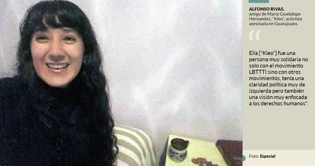 Su nombre era María Guadalupe Hernández, pero sus amigos y colegas la conocían como Lucrecia Esparto, “Kleo”. Era maestra y activista. Lo mismo participaba en las marchas por la defensa de la educación, contra la discriminación a la comunidad LGBTTTI, y la violencia en contra la mujer que desde la aulas fomentaba "la resistencia".