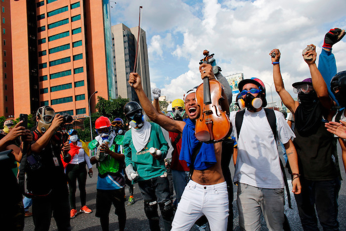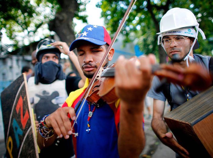 Arteaga se hizo conocido al tocar tristes versiones del himno venezolano durante las protestas del año pasado y porque en un enfrentamiento con policías lo tiraron al suelo, le rompieron el violín y lo encarcelaron. En la cárcel, dijo Arteaga, fue golpeado y torturado.