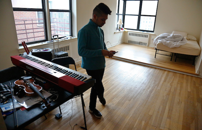 El músico camina las frías calles de Nueva York con su violín, al que llama May, y un gran altavoz con ruedas. Algunos días visita un estudio de música donde compone canciones para un álbum pop que sueña con lanzar. A menudo se lo ve absorbido en su teléfono celular, chateando con amigos, llamando a la novia que dejó en Venezuela o aceptando un trabajo para tocar esa noche en una discoteca latina de Queens o Long Island.