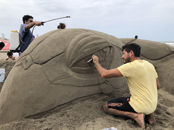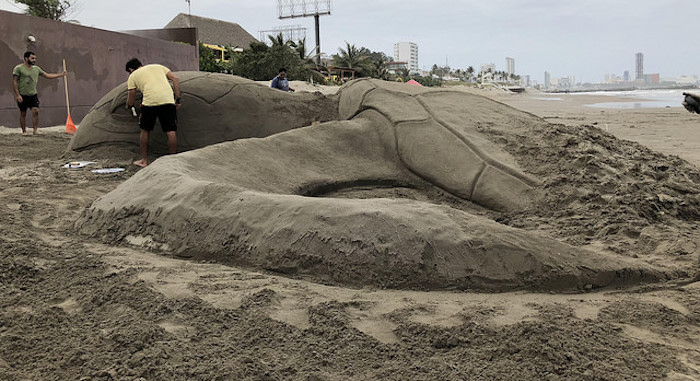 Con el propósito de generar responsabilidad en las grandes empresas sobre la necesidad de reducir el consumo de plástico, artistas y voluntarios trabajaron más de 12 horas en una escultura de arena en playas mexicanas.