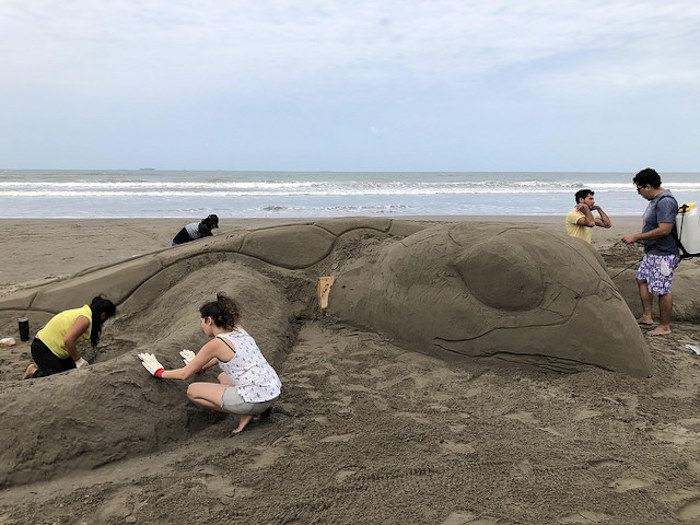 Los escultores Francisco Javier Calvillo y Carlos Ramírez Pereira fueron los encargados de crear esta obra, quienes trabajaron por más de 12 horas apoyados por voluntarios de Greenpeace en la recreación de este reptil gigante.