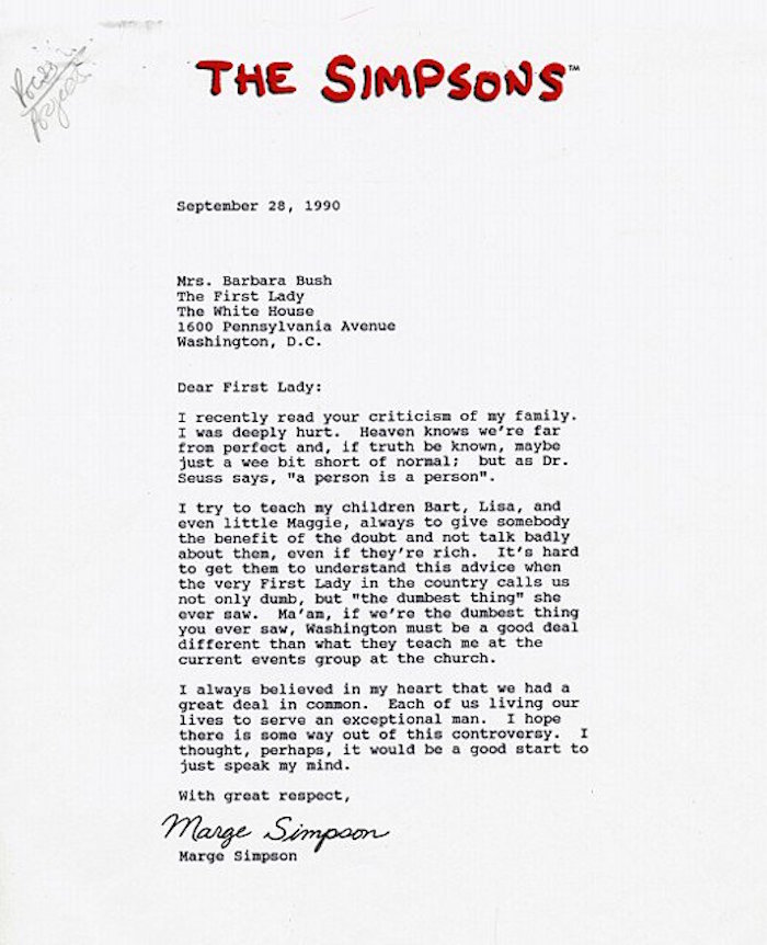 .@TheSimpsons Letter to Marge from the late Barbara Bush... pic.twitter.com/ujDdhSG3fx