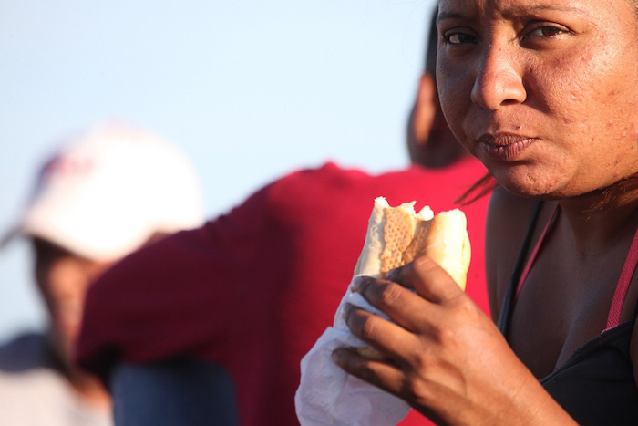 En ese punto de la periferia de la ciudad, un grupo de mujeres del Comedor Franciscano para el Inmigrante recibió a cada uno con una ración de caldo de pescado, arroz con papa y zanahorias, tortillas y café, con lo que aliviaron el cansancio y el hambre.