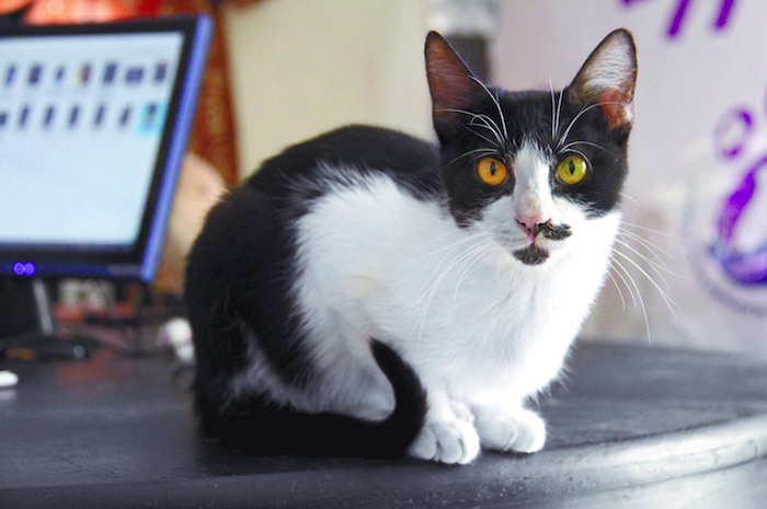 Felicia es blanca con negro y se ha convertido en la enfermera, la encargada de dar apoyo emocional a los animales enfermos que llegan al consultorio se su ama Karla.