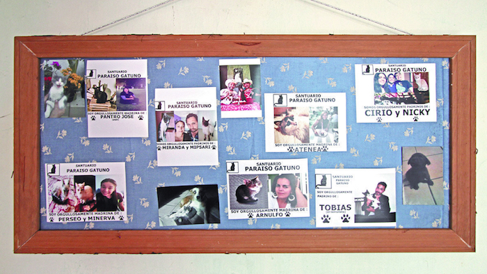 Carlos y Salvador suben a la página del “Santuario Paraíso Gatuno” el álbum con las fotografías de los gatos y la gente escoge: “yo quiero apadrinar a Gaspar y me comprometo con 50 pesos, con 100 pesos”. Y les ha funcionado muy bien, tienen buena respuesta.