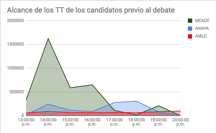 Alcance de las principales tendencias en torno a los candidatos durante las siete horas previas al primer encuentro entre los cinco candidatos a la Presidencia de México. Foto SinEmbargo