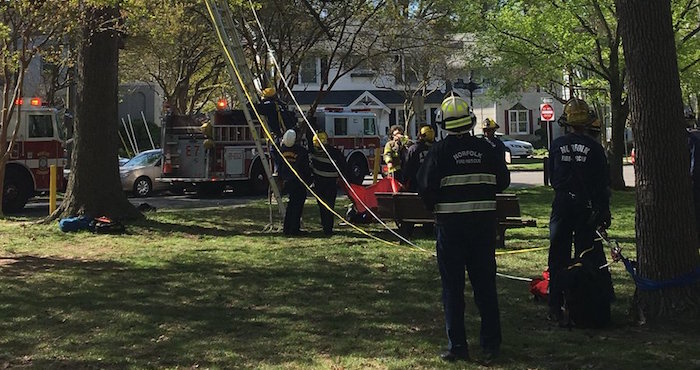 Bomberos rescatan a un hombre y un gato que quedaron atrapados en un árbol. Foto: Twitter / @norfolkfireresc
